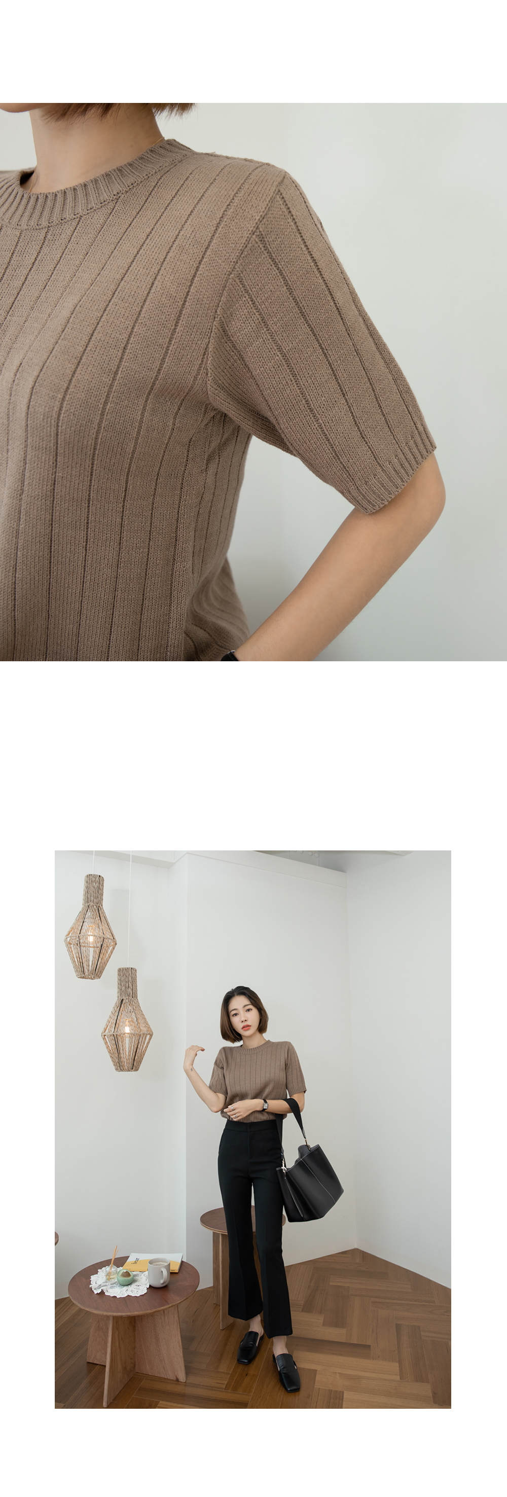 굵으면서 탄탄한 골지원단으로 힘있게 바디라인을 잡아주어
