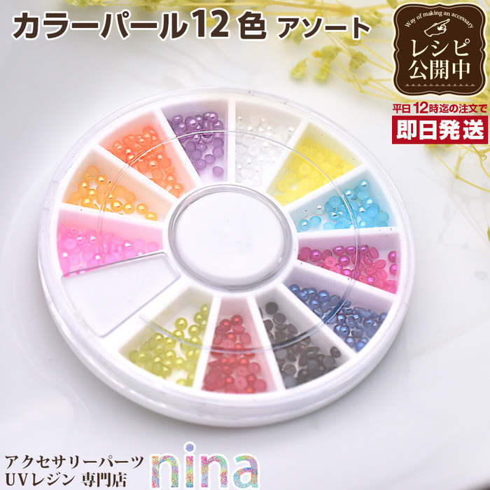 ■生産国:中国カラーパール 12色 アソート デコパーツ おしゃれ アレンジ かわいい 手作り ハンドメイド UVレジン 手芸 レジン アクセサリー パーツ レジン液 フラクト 素材 おしゃれ ネックレス ピアス カラーパール 12色 アソート カラーパール 12色 アソート カラーパールを12色楽しめる!