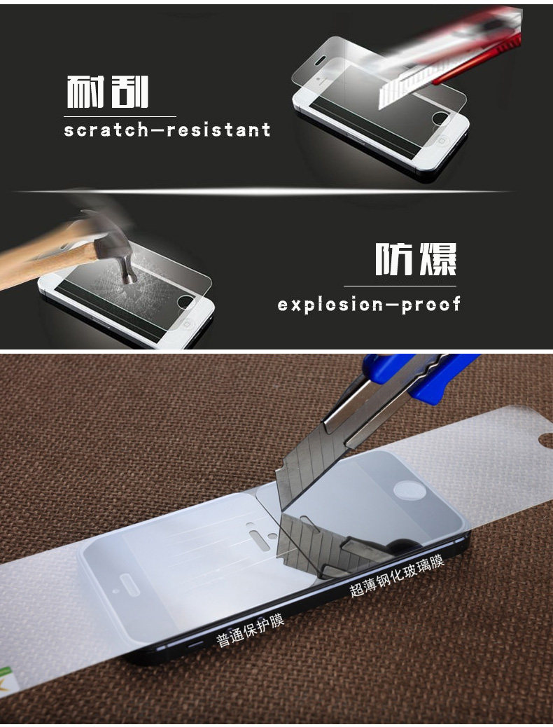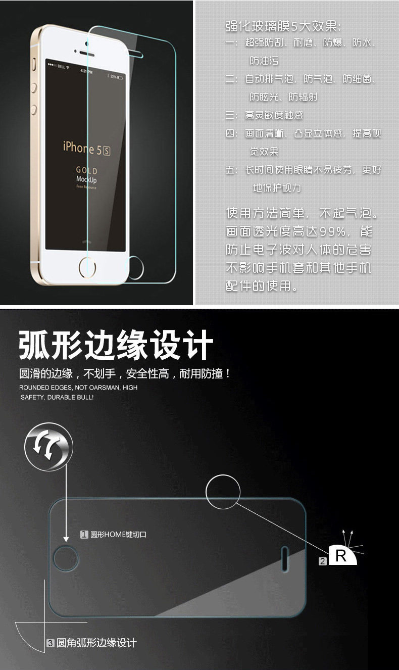 Superhard 0.3mm thin glass membrane arc edge, sub 4 / 4S and 5 / 5S / 5C and iphone6 ​​4.7 inch, 6plus5.5 inch four models