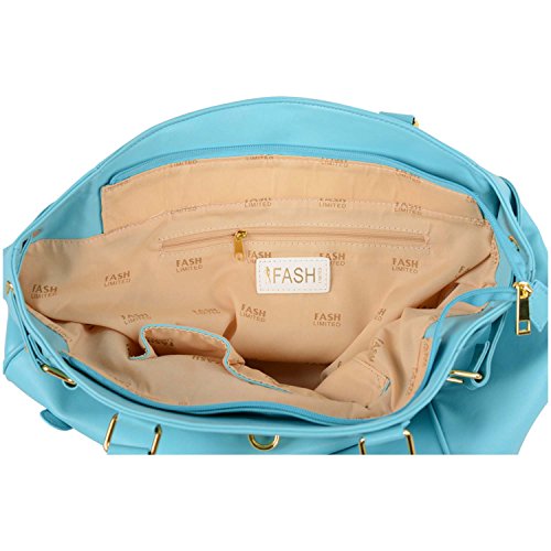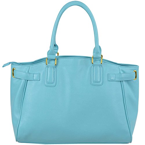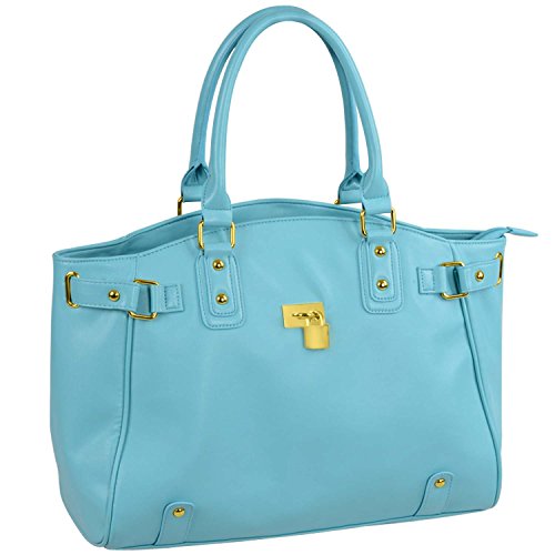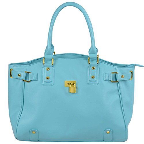FASH Gold Padlock Shopper Zipper Hobo Shoulder Handbag,Light Blue,One Size