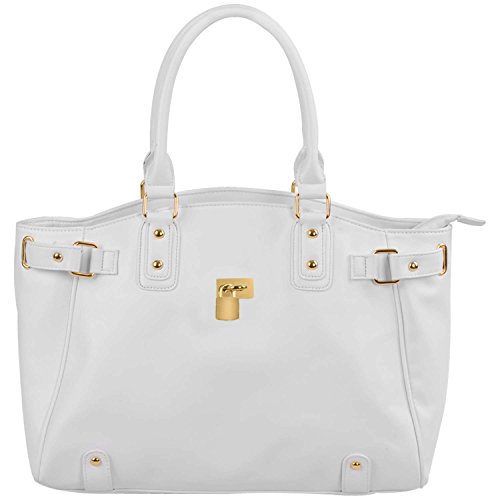 Complete your look with this classic and chic faux leather handbag by FASH. We bring you this classy handbag which will perfectly match everything that you have in your closet, be it casuals or formal, it is just this handbag that you need to make yourself look smarter. The subtle design of this bag will surely add a mark of sophistication to your entire look. The excellent craftsmanship together with the high quality faux leather and gold tone hardware has produced a handbag, which every woman would love. Apart from its classic outlook this bag also provides you with ample of space inside. The interior of is made using a strong synthetic lining, apart from this you will also find two open and 1 zippered pocket inside this bag that will ensure organized storage for your essentials like cell phone, keys, money and much more. The overall structure is well defined, stylish and enduring which makes it suitable to carry anytime throughout the year. This bag has dual handles supported with gold tone hardware and also an extended detachable strap that allows you to wear the bag as a sling enabling ease in portability (The height of this strap can be adjusted as an when needed and as per your convenience)
