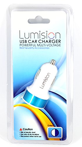 -. Title : Lumision White with Blue Ring High Quality Dual 2 Port USB Car Charger 5v DC - (1A & 2.1A) 3.1A Amp Total Power Output Travel Charger supports iPhone iPad iPod Samsung Galaxy HTC Smart Phones Tablets GPS MP3 MP4 and more **3 Year Warranty**