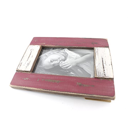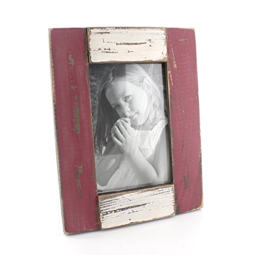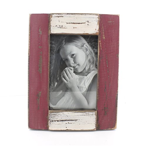 4x6 Inches Simple Rectangular Wood Desktop Family Picture Photo Frame with Glass Front (Red and White)
