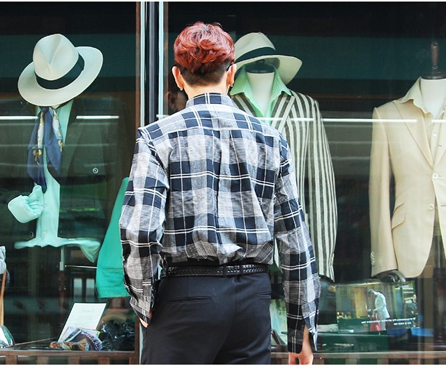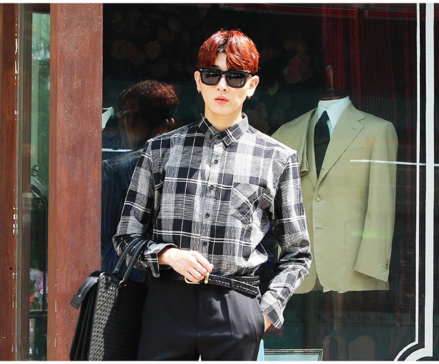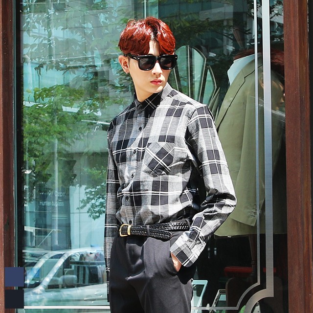 タータンチェック柄の胸ポケット付きボタンダウンシャツです。