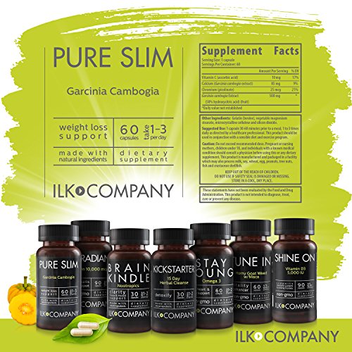 -. Binding : Health and Beauty -. Brand : ILK Company -. EAN : 0656649996787 -. Feature : QUICK WEIGHT LOSS - Slim down your waist with PURE SLIM (30 capsules, 1-2 capsules per day) / LUXURY 100% GARCINIA CAMBOGIA - Natural ingredients dietary supplement company for quality products. / APPETITE SUPPRESSANT - Take a pass on a full belly and take advantage of our fat burners. / MADE IN THE USA - Quality supplements made in the USA not to be used as meal replacement. / 100% SATISFACTION GUARANTEE - We stand behind our best selling PURE SLIM Garcinia Cambogia perfect for weight loss and waist trainer. Get fit get skinny and do it while having a healthy liver. Fit into a corset without the need of shakes, drops or hcg. Super fat removed from stomach as organics help you sweat like a vest. A wieght loss cleanse pill that even Dr. Tobias would recommend. Relief for constipation, thyroid issues. Booster instant fast laxatives combined to increase your metabolism. -. IsAdultProduct : 0 -. Label : ILK Company -. Manufacturer : ILK Company -. MPN : 656649996787 -. PackageQuantity : 1 -. PartNumber : 656649996787 -. ProductGroup : Health and Beauty -. ProductTypeName : HEALTH_PERSONAL_CARE -. Publisher : ILK Company -. Studio : ILK Company -. Title : 100% Garcinia Cambogia Extract 1500mg with 750mg HCA - Fast Weight Loss & Metabolic Appetite Suppressant - Carb Blocker Fat Burner for Men & Women - 60 capsules -. UPC : 656649996787