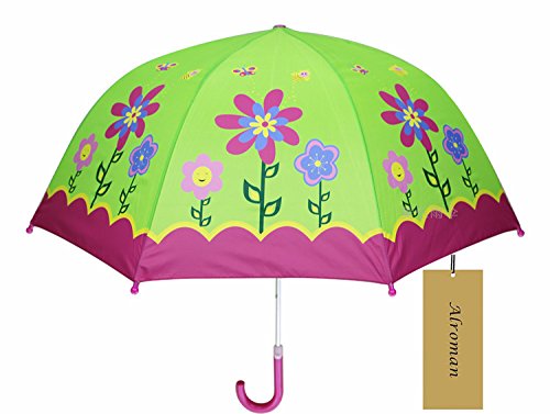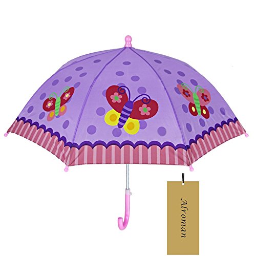 Studio : Alroman Publisher : Alroman Product Description 1) WIND-PROOF 9-RIB CONSTRUCTION - Most umbrellas are made of 6 or 7 aluminum ribs but this umbrella is fortified with 9 resin-reinforced fiberglass ribs that flex slightly to withstand powerful gusts without turning inside out. 2) SUPERIOR WATER-REPELLENCY - This umbrella repel water and other elements through its waterproof and instant drying canopy. 3) Super cute carton pattern design makes it ever pretty and attractive for girls,also can be work as photo posing props. 4) The size is 27.6 inches dia. when open the umbrella. It's perfectly fits for children to hold protecting themselves from rain or sun,easy to carry for outings and traveling. 5) Usually it fits children between 3~8 years old, you can also check the measurements instruction for reference before you make the final decision. 6) Manual open. Durable materials: made of strong polyester cloth, 9 ribs and slip-proof handle,lightweight and durable.It's an excellent gift for your girls. 0