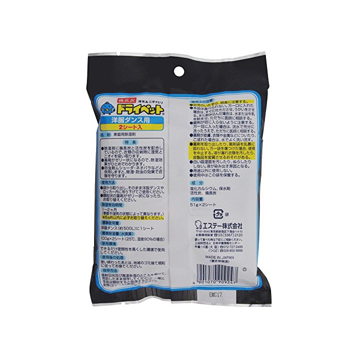 원본상품명: 備長炭ドライペット 除?? 洋服ダンス用(51g×2シ?ト)