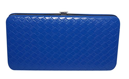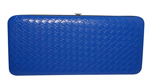 Chicastic Weave Pattern Faux Patent Leather Flat Hard Clutch Wallet - Small Blue