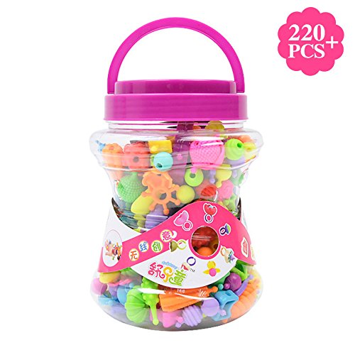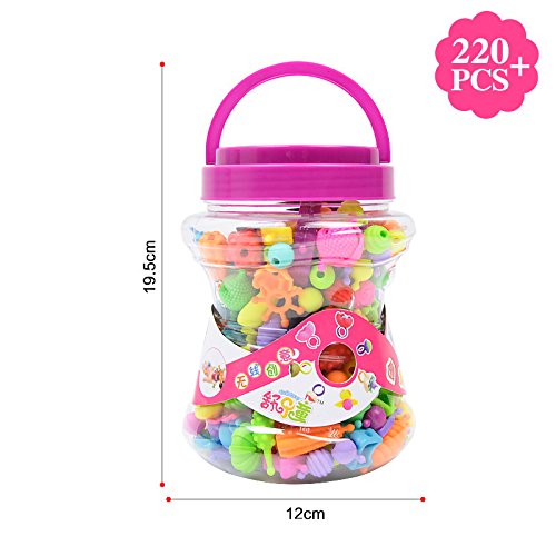 Colorful & funny accessories: this unique snap-lock fashion kit comes with a pink storage box and 220 pieces beads accessories in various shapes, sizes, designs, and colors.