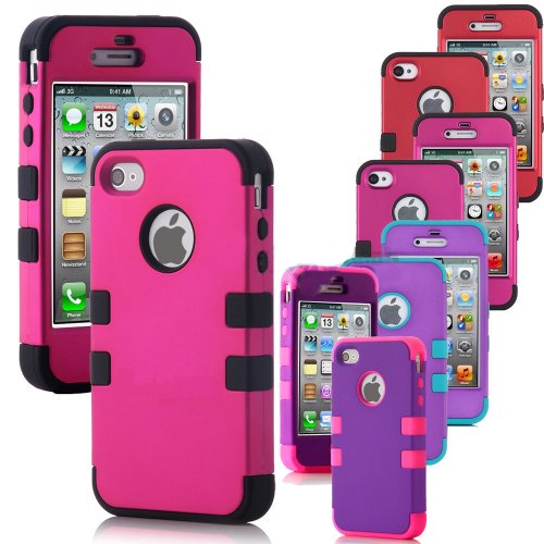 - Feature : COLOR: This case comes in a deep high quality color that will last the life of your iPhone 4 and 4S smartphone because the color is fused with the hard rubberized material itself and it is than glossed over. This guarantees that fading does not occur. / WARRANTY AND PACKAGING: This product will come sealed in the manufacturer authorized packaging and will come with a true lifetime warranty that is good for one free replacement during the course of the original buyers' life. The manufacturer warranty is guaranteed if your purchase has any manufacturer defects that occur during your ownership of this product. / MATERIALS AND DESIGN: IMPORTANT FEATURES AND DESIGN: This case comes with a flexible easy grip silicone gel that prevents your iPhone 4 and 4s phone from slipping out of your hands yet will not latch onto the material of your pocket. This means you can slide the phones in and out of your pocket with ease and keep your phone from slipping out of your hands. Keep your iPhone 4 and 4S usable and protected in style with this duo-shield hybrid Case Constructed from smooth, treated silicone that resists dirt and stains. / MATERIALS AND DESIGN: The case has a hard external fitter 2 piece layer with a silicone flexible gel interior layer for double the protection. This case protects the iPhone 4 and 4S from scratches and dust. The snap together 2 piece external plastic layer provides extra security against bumps and falls. The unique combination of hard plastic and soft silicone material gives this case an unmatched look. This high quality silicone tough commuter case for the iPhone 4 and 4S is thick and durable. Also note that no parts of this are made of toxic or hazardous materials. Our manufacturers are all subject to strict standards enforced by our business and their local governments. / COMPATIBILITY: It is important to note that the iPhone 4 and 4S by Apple is for sale from many different business and this case is compatible with every iPhone for sale from every single business that sells it including Sprint, T-Mobile, Verizon, At&T, China Mobile, Cricket and more. The iPhone 4 comes in 8GB, 12GB, 16GB, 32GB and a 64GB configuration and this case is compatible with each GB configuration. The iPhone 4 comes in the following colors; Black, White, Silver and Gold. This case is compatible with each of those iPhone 4 and 4S colors. There are also 4 different models of iPhones in the 4th generation series; iPhone 4 (Models: A1349 and A1332) and the iPhone 4S (Models: A1387 and A1431) and this case is compatible with all 4 of those models. If you are looking for a different color of case please see our inventory for the large selection of colors we have in stock!