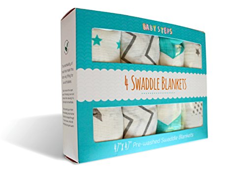 -. Feature : BLACK FRIDAY & CYBER MONDAY DEALS ARE ON TILL SATURDAY! - 100% SOFT MUSLIN COTTON is made with an open weave, the threads go over and under each other, allowing it to be lightweight and breathable. / MULTIPLE USES our stylish blankets can also be used as a burp cloth, nursing P.R.Ivacy blanket, nursing cover, changing table cover, stroller cover, or a baby carriage cover to protect your baby from the sun. / CHEMICAL FREE DYES Gentle on your baby's skin. All natural safe dyes. the blankets are made with NO chemical to protect your little one. You can be sure the swaddle blankets will NOT discolor or bleed into other laundry wile washing. / WE HAVE FULL CONFIDENCE IN OUR PRODUCT Here at Baby Steps, we Committed to provide our customers with the highest quality available, If from any reason you didn't like our product we give 30 DAY MONEY BACK GUARANTEE / BEST VALUE This set includes 4 Blankets, size - 47" - 47" ( 120 cm X 120 cm ) Swaddle Blankets, Free high quality bib for your little one + Free EBOOK