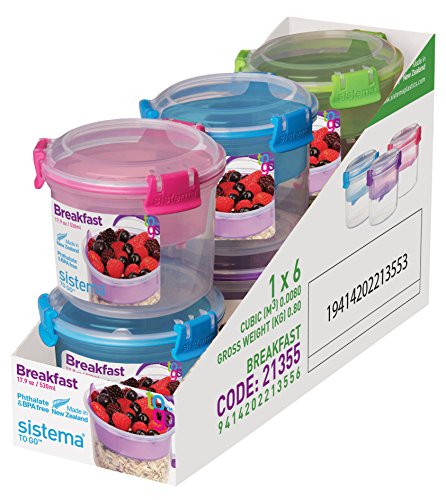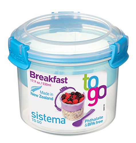 Sistema To Go Collection Breakfast Bowl Food Storage Container, 17.9 oz, Clear with Blue Accents
