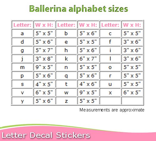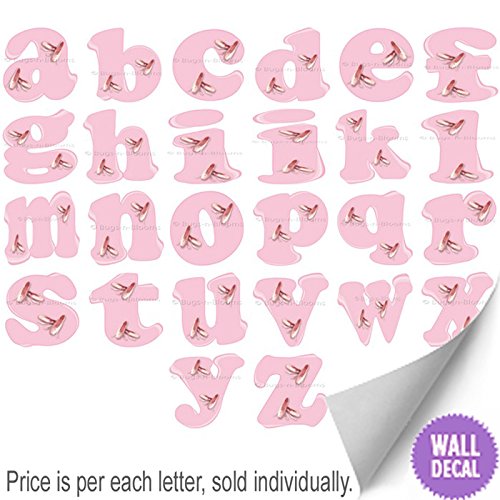 -. Binding : Kitchen -. Brand : Bugs-n-Blooms -. Color : pink -. Feature : Pink Ballerina Ballet Slippers Dance Shoes Alphabet Letter Name Initial Wall Vinyl Sticker Decal Letters for Children's Nursery Baby's Room Decor Baby Girls Bedroom Decorations Child's Names Butterflies Kids Mural Walls Decals Playroom Home & Party. / Ideal for Baby Nursery Kids Bedroom Girls Room. Wall monogram letter sticker, instant personalization. You select letter(s) from drop down box that you need, sold per letter & NOT for whole alphabet, sizes vary per letter. Customize your child's walls with easy peel and stick alphabet name wall letter sticker. Decorative wall stickers for girls are the latest trend in kids room decor! Wall decals are a quick way to decorate a little girl's bedroom, nursery, playroom, or even school locker. / Each lower case alphabet letter sticker has an image of a ballerina ballet slipper dance shoe. Fading from dark to light adds a 3D effect. This is a sticker, not a dimensional item. See size chart image for each letters measurements; just like when handwriting a name, certain letters are taller & wider than others. / Wall decal sticker is recommended for smooth, flat, dry, clean surfaces. Simply peel & stick. Removable & reusable without damaging the letters or walls. Mix -n- match styles & colors, see store for more colors/styles. Lower case letters only available, sorry we do not have upper case letters. Interested in spelling a whole name or favorite phrase for your child, dont worry we combine shipping based on subtotal. / SEE STORE POLICIES: regarding wall stickers, due to the customization, delicate and fragile nature. Please contact us if you have any questions and be sure to visit our 'How To Apply Wall Stickers' page for more information prior to purchasing: http://www.amazon.com/gp/aag/details/ref=aag_m_fi?ie=UTF8&asin=&isAmazonFulfilled=&isCBA=&marketplaceID=ATVPDKIKX0DER&orderID=&seller=A2RFZLVKNCOP5I#custom1 -. Label : Bugs-n-Blooms -. Manufacturer : Bugs-n-Blooms -. ProductGroup : Home -. ProductTypeName : HOME -. Publisher : Bugs-n-Blooms -. Studio : Bugs-n-Blooms -. Title : Wall Letters Pink Ballerina Ballet Slippers Dance Shoes Alphabet Letter Initial Sticker Vinyl Stickers Kid Decals Childrens Room Decor Baby Nursery Girls Bedroom Decorations Childs Names Dancing Decal