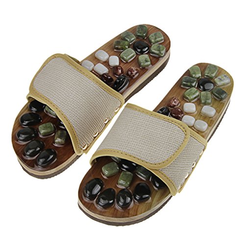 -. Feature : Foot massage is one of the most unbelievably relaxing treats you can give yourself. It is based on reflexology. It involves applying focused presure to certain known reflex points located in the foot to cure or prevent disease. / Ergonomic design with red magnetic therapy beads, comfortable fixed Ying Yang knobs or rotate knobs for 70 Acupressure points to effectively stimulate the key acupuncture points in the feet, relieve from strain and pain, it is equal to getting a massage service, providing ultimate comfortable and luxury feel. / Functions: Spent only a few cents a day, Save the high medical bills, Promote the blood circulation and cramps of the legs., Improve well-being, Get the health and vigor for yourself and your family. Always stay energetic. / Rotating Acupressure Foot Massage Slilppers Sandal Shoes, suitable for both men and women. Available in 2 sizes: US Size Men (6-7)/ Women (7-8.5), and Men (8.5-9)/ Women (10-10.5) / Adoption of flexible design enables shoe surface to be adjusted optionally, even for high-instep people. Walk Your Way to Well-Being, the individual little studs press down and twist with your movement, stimulate circulation in the foot. Wonderful design!