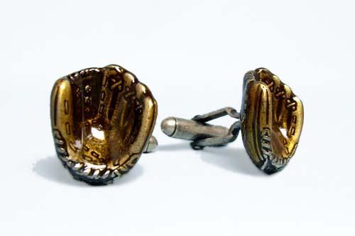 細部までこだわった、優しい色をしたグローブのカフスです。野球ファンにはたまらない、プレゼントとしても喜ばれる一品です。
