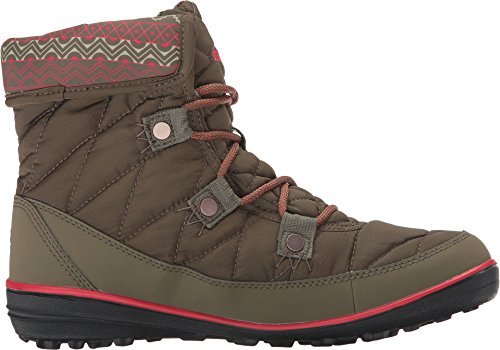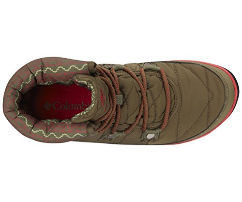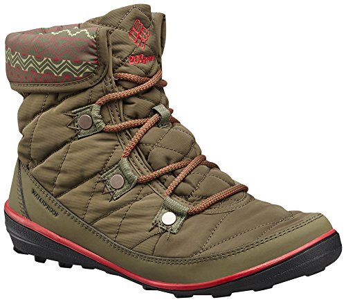 Binding : Apparel Product Description Omni-Techa"¢ waterproof, breathable membrane locks out water, while allowing moisture to escape. 200 g insulation retains warmth. Rated for temperatures down to -25A°F/-32A°C. Waterproof, two-tone, quilted woven synthetic textile upper. Fold-over collar boasts a bold geometric print pattern. Lace-up closure. Metal rivets and aglets. Textile lining. Removable, contoured PU footbed. Non-marking Omni-GripA® Advanced Traction outsole delivers optimal traction. Imported. 0