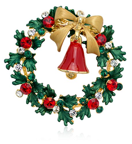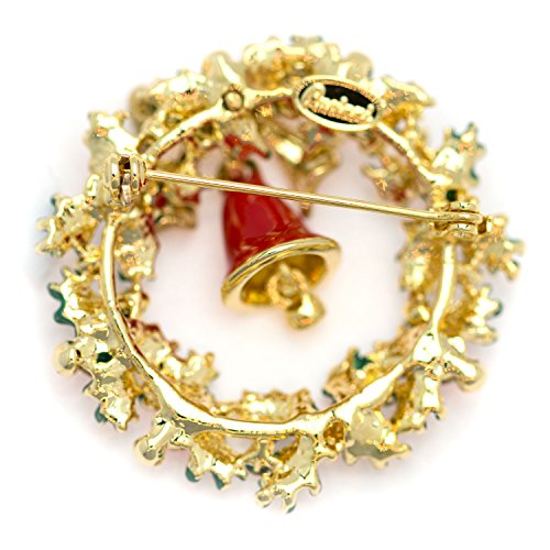 AKIANNA CHRISTMAS WREATH AND BELL BROOCH PIN WITH SWAROVSKI ELEMENT CRYSTALS