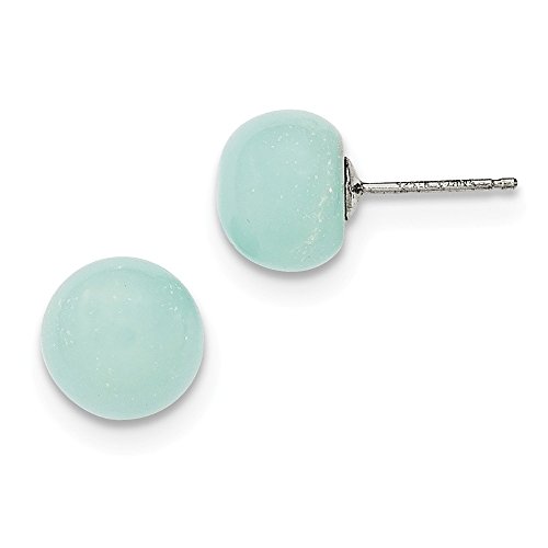 Solid 925 Sterling Silver 10-11mm Button Amazonite Post Earrings