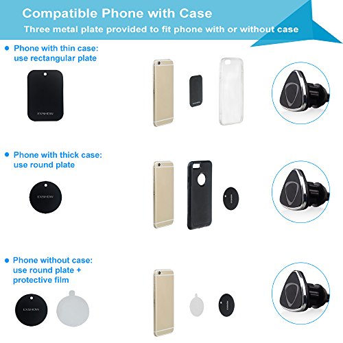 [Compatibility with Phone Case]---The metal plates we provided are suitable for phones without case, slight phone case and thick phone case. Basically contains the cell phone on the market including iPhone 4/5s/6/6s/7 Plus,Samsung Galaxy, LG G5, Nexus, Moto, HTC, Sony,iPad mini, etc