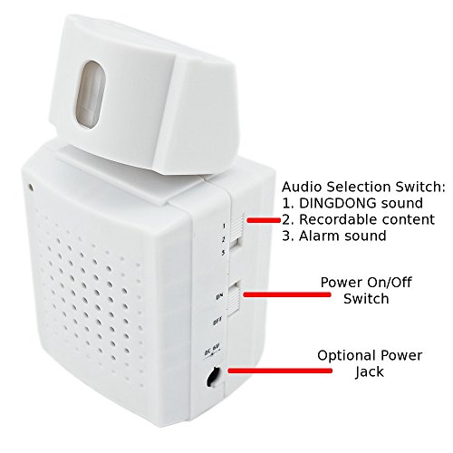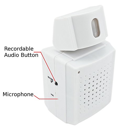 - Feature : A unique doorbell with motion sensor activation and customizable audio recording alarm feature. / Many creative uses for this doorbell including: 1) great voice alert reminder as an elderly senior enters a room 2) activate a voice alert as you leave or enter the house, 3) alert a shop owner when a customer enters the store, 4) trigger an voice reminder to close the lights as you leave a room, and so much more ! / The audio recording feature allows recording of an audio clip of up to 20 seconds. Playback of the recorded audio is initiated when the motion sensor is triggered.