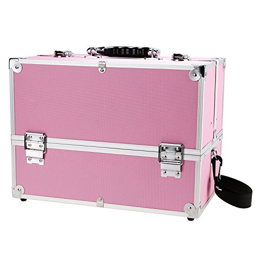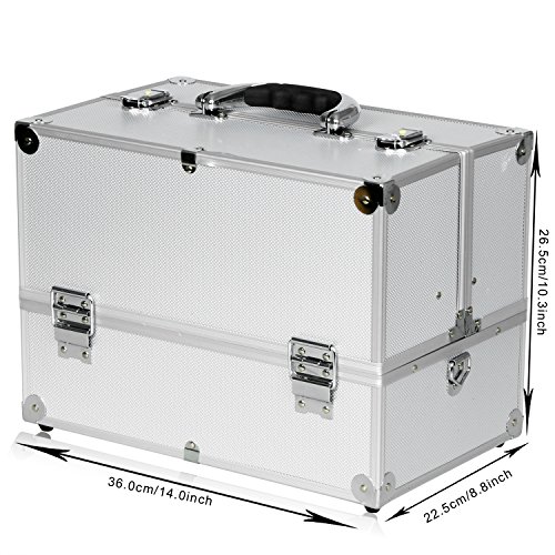 -. Title : Makeup Train Travel Case 3-Tier Portable Lockable Cosmetic Jewelry Organizer Box with Mirror