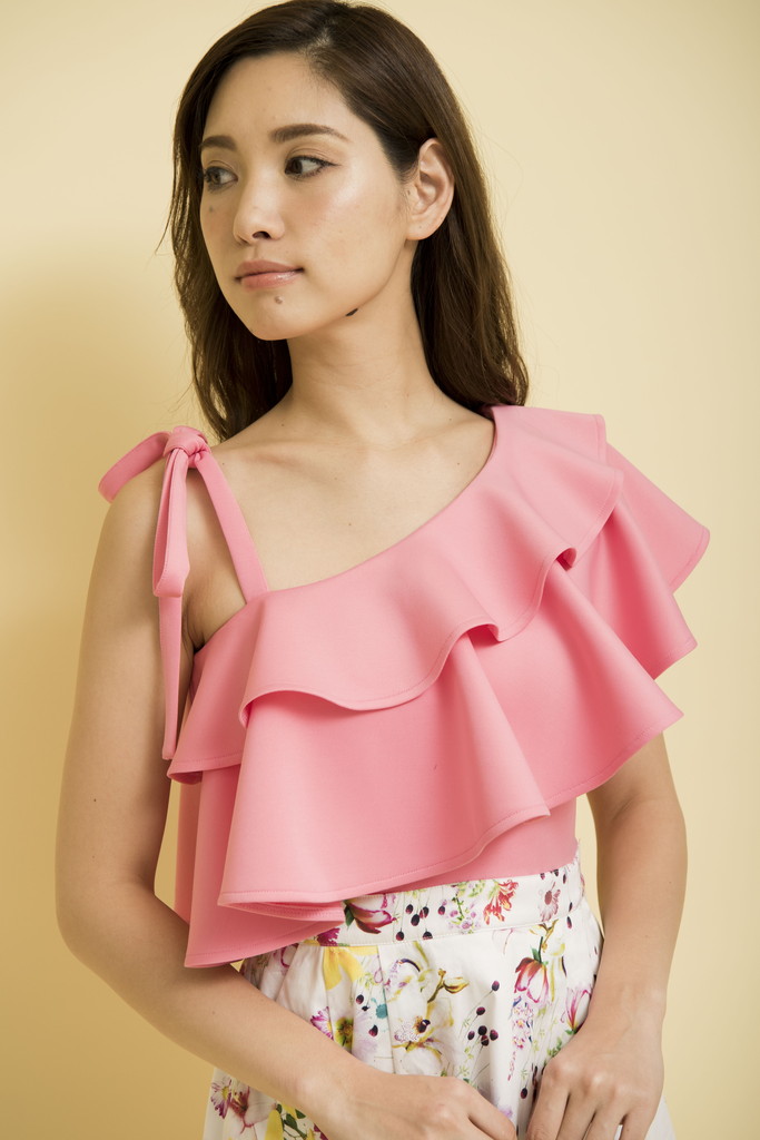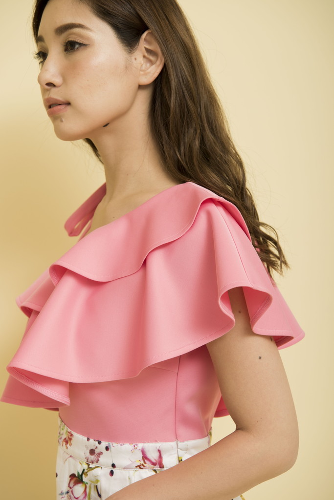 Playfulなアイテムを提案ビックフリルのワンショルダーが目を引くワンピース。