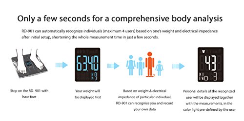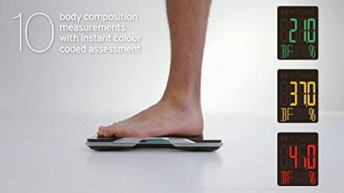 -. Feature : World's only dual frequency consumer scale for greater body composition accuracy / Bluetooth Low Energy 4.0 radio wireless communications / iPhone compatible (iPhone 4S and newer) & FREE App / User recognition - just step on and the scale will start taking a measurement / Up to 10 measurement assessments shown in 3 backlit colors
