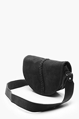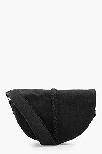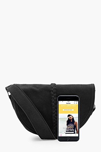 (Boohoo)/Accessories/Handbags/DIRECT FROM USA/Boohoo Womens Millie Real Suede Semi Circle Cross Body in Black size One Size