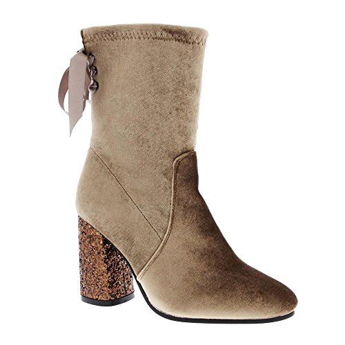 Binding : Apparel Product Description Elevate your bootie collection with this velvet glitter heel bootie! This bootie features plush velvet, ribbon lace tie details, and a glitter heel-making it the perfect velvet bootie! This heeled bootie is easy to style and can be worn during the day or for a date night. We're certain this will become one of your closet staples! Available in black, navy, and wine. 0