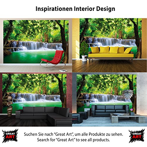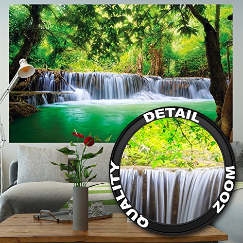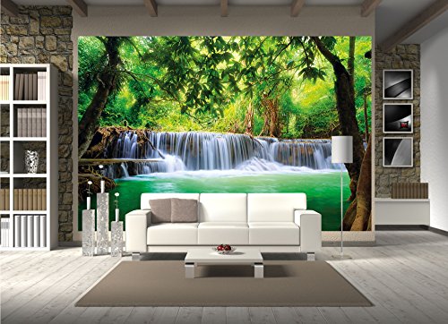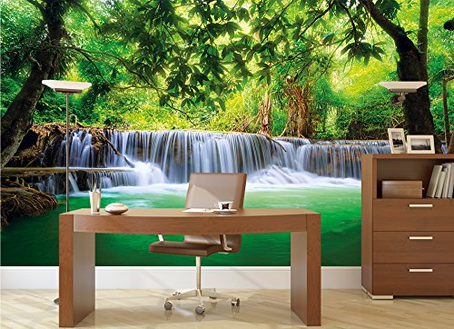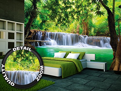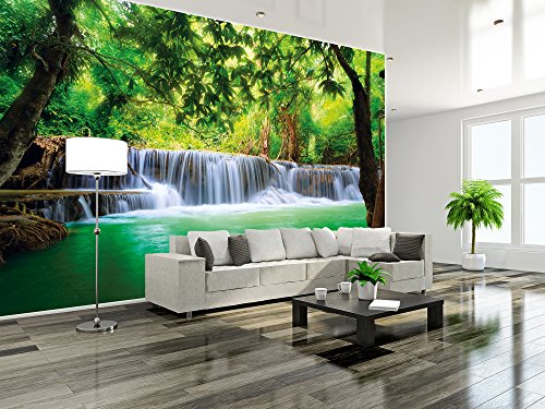The feeling of being in paradise for your home. Beautify your home with this unique wall paper. Whether in your living room, dining room or as a wall decoration in your living room, the wall paper is perfect for every occasion. The motive is bright and friendly and shows a waterfall in a jungle. The picture is of high quality and high definition. Full of details and qualitative, this wallpaper will give you a unique experience. The wallpaper consists of eight panels and has a total size of 132.3 Inch x 93.7 Inch. You can mount the photo wallpaper with wallpaper paste or you can use it as a wallpaper or poster. The picture is of a very high quality with high resolution and covering colours. The paper is quite sturdy and the picture can be wallpapered over existing wallpaper. Instructions will be provided. Check out our shop for more motifs, art und great offers!Feature