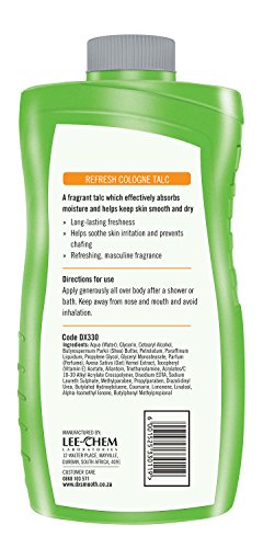 Studio : Lee-Chem Laboratories Publisher : Lee-Chem Laboratories Binding : Misc. Product Description A fragrant talc powder which effectively absorbs moisture and helps keep skin smooth and dry ≫Long-lasting freshness ≫Helps soothe skin irritation and prevents chafing ≫Refreshing, herbal fragrance 0