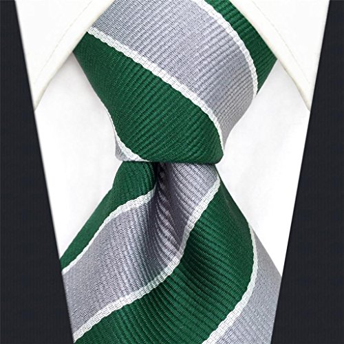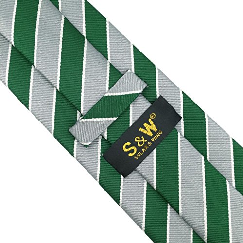 | (Shlax Wing)/Accessories/Ties/DIRECT FROM USA/ShlaxWing Classic Stripes Mens Necktie Ties Grey Green Business Suit Jacquard Weave |