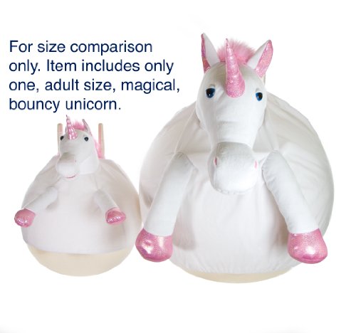 Product Description Ride a magical REAL Unicorn like you always wanted! Race friends and family alike with Anna the magical unicorn, but pay attention at night as this unicorn comes alive and watches you sleep. Pump, ball, and plush cover included. 29 inches in Diameter. BIG. Share the fun! Please review our products on amazon! 0