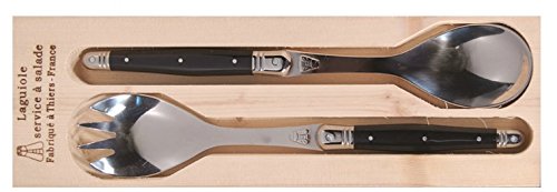 (ReBL LLC)/Kitchen Dining/Tableware/DIRECT FROM USA/Laguiole Carving Set and Salad Servers with Black Handles in Wooden Boxes Plus Bonus Kitchen Towels