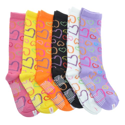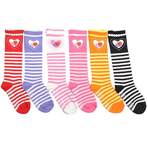 Cute and colorful knee socks are the easiest accessory to complete (dress up) any outfits, whether it's with tutu skirts or dresses, they can instantly turn your princess into fashionistas. Sizes 1-3 and 4-6 come with non-skid bottom to prevent slipping. Made from super soft cotton blend, these socks are gentle on the skin, but durable and machine washable for everyday use. Your cute little girl surely will love the beautiful colors and designs of these knee high socks. Keep the legs warm and cozy with these soft beautiful cotton socks in the winter. Comes in a 6-pair-pack with 6 assorted colors.Feature