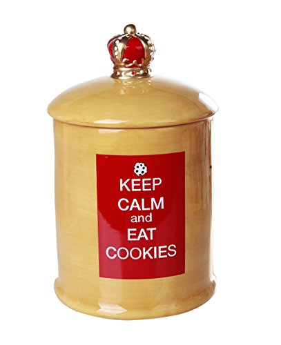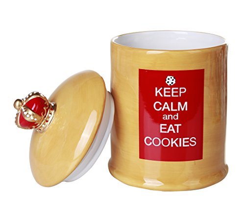 Product Description Everyone loves to eat freshly baked homemade cookies that is just hot out of the oven. It keeps us calm as we enjoy every single bite of it. This oven cookie jar is quality crafted and is a cheerful addition to your kitchen counter. The design is inspired by the motivational poster Keep Calm and Carry On produced by the British in 1939. It comes with an air tight lid to keep your baked goods fresh and is easy to clean. It stands 5.5"W x 8.75"H. Get one for yourself or as a gift for your friends and family today! 0