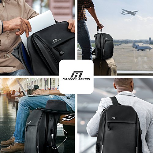-. Feature : AESTHETIC SIMPLICITY: Massive Action Laptop Bag Backpack is made of Premium Quality Scratch/ Water-Resistant Nylon to keep your essentials clean and dry during the rain. Massive Action Laptop Backpack has External USB Charging Port, including USB to USB Internal cord for connecting your Power Bank (not included) with External USB Charging Port for quick and comfortable Charge On The Go. / APPLICATION: Everyday Backpack, Travel Backpack, Professional Backpack, Student Backpack, Tech Bag, Daypack. / STORAGE: Laptop Backpack has padded 15.6-inch laptop compartment, tablet pocket, anti-theft pocket on the pack and the secondary compartment. / DIMENSIONS AND GENERAL INFORMATION: 19.7 x 13.3 x 8.4 inches. Massive Action 15.6-inch Laptop Backpacks for men are designed for everyday use. This professional Laptop Backpack fits PC Laptop, apple MacBook, and all kind of laptop brands up to 15.6 inch. / ERGONOMICS AND COMFORT: Extra thick back support and adjustable padded shoulder straps for optimal comfort and ergonomic support. Men's Laptop Backpack also has hidden back pocket to keep the documents safe.