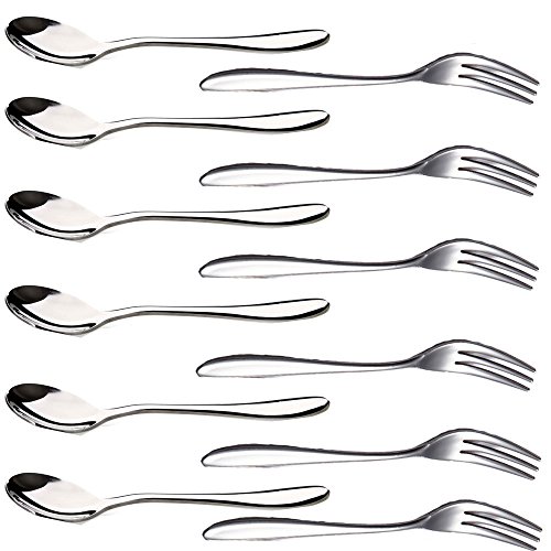 Glittermall 12PCS Stainless Steel Cocktail Tasting Appetizer Cake Fruit Forks and Tea Dinner Server Spoon Kitchen Accessory Wedding Party (6 forks 5'' and 6 spoons5'')