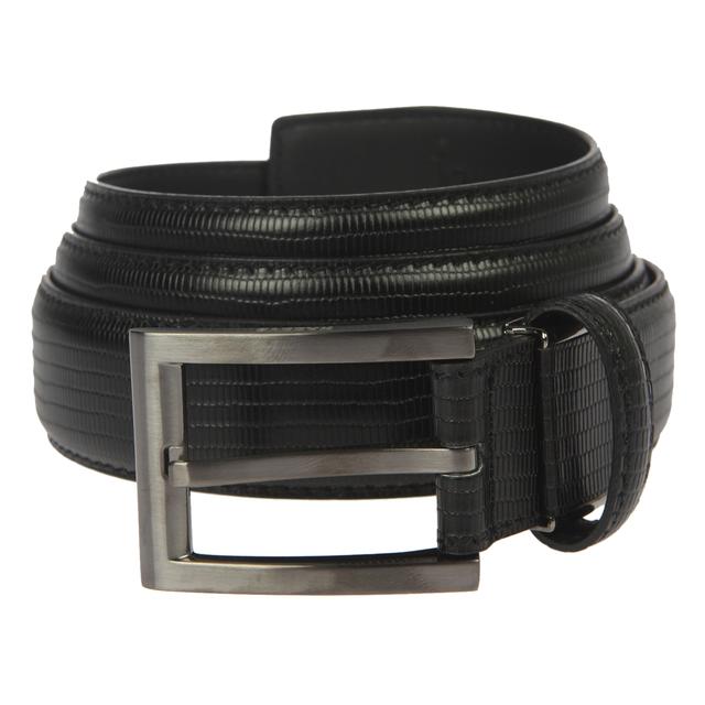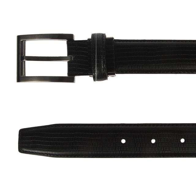 깔끔한 블랙 컬러에 가죽패턴으로 세련미를 자랑하는 벨트입니다. 실버 컬러의 스퀘어 버클로 멋스러운 아이템입니다. 트렌디한 감성으로 다양하게 매치할 수 있어 활용도가 높은 제품입니다.