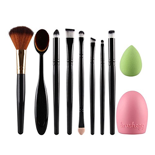-. Title : G2PLUS® 10 PCS Foundation Blending Blush Eyeshadow Face Powder Brush Makeup Brushes Set with Cosmetic Sponge Puff and Brush Egg Cleaner