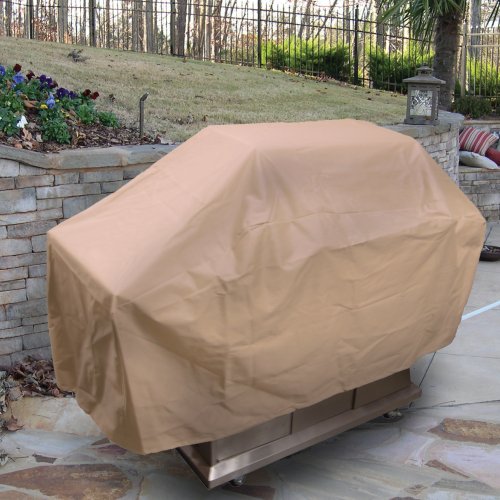 -. Feature : Heavyweight polyester fabric resists ripping, tearing, cracking / PVC coated underside provides protection from snow, rain / Mold, mildew and fade resistant / Tie-down straps secure cover to grill / Measures 68 x 21 x 35 in.