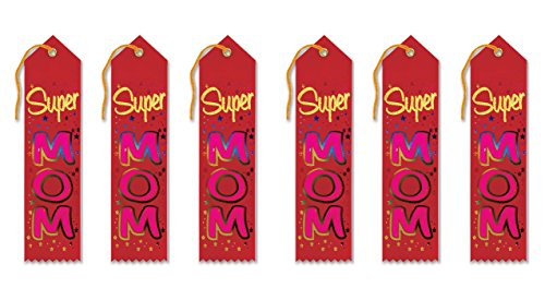 Beistle AR216 Super Mom Award Ribbons, 2 by 8-Inch, 6-Pack