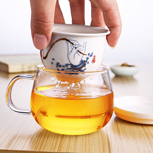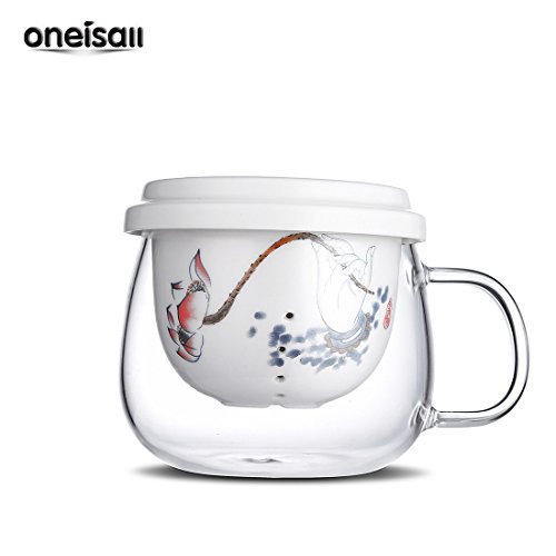 ONEISALL GYBL090 내열 글래스 세라믹스의 차를 거르는 쇠조리 멋쟁이 원 컵 머그 규스(차 주전자)