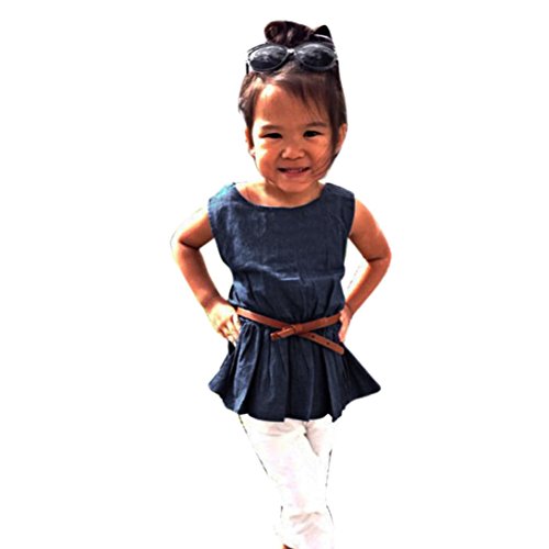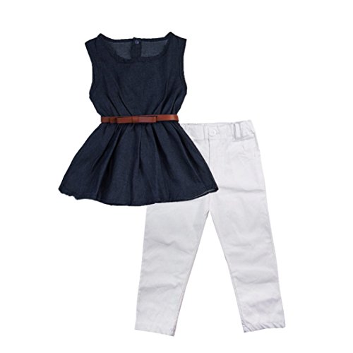 -. Feature : ♥Note:This ia Asian Size,sometimes it will be smaller one size than US size,Please kindly check the size detail before you buy it. / ♥Clothing is very cute and nice, very suitable for your little kids / ♥Sleeve Length:Sleeveless; Pattern Type: Solid Belt, Gender:Girl / ♥Design,so fashion, cool,Great gift to baby,Fit for casual,photograph, party, Daily and any occasion / ♥Package include:1PC Shirt 1PC Long Pants 1PC Belt,Suitable for ages in children (2-6 years old)