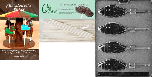 Cybrtrayd 45St25Bk-K015 'Submarine Lolly' Kids Chocolate Candy Mold with 25 4.5-Inch Lollipop Sticks and Chocolatier's Guide
