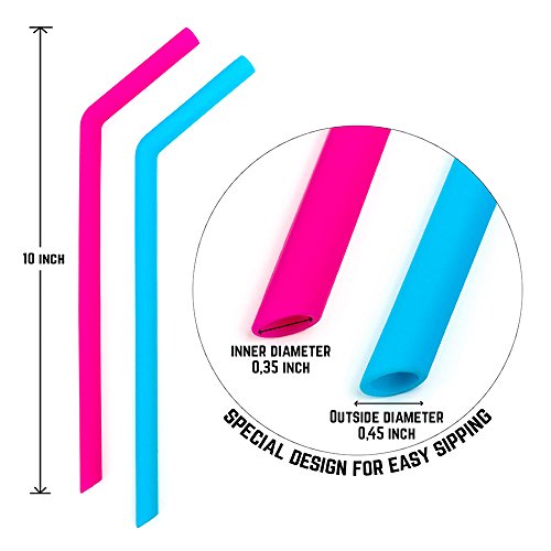 - ENJOY THE QUALITY AND DURABILITY: just use The Kitchen Up Big Smoothie Straws just one time. You’ll feel the extra quality we put in this package. The Extra Long Straws (10 inches) are made from premium materials - Food Grade Silicon. We also chose to redesign the bottoms of the straws. The new design allows you to sip and to enjoy your drinks more comfortable.