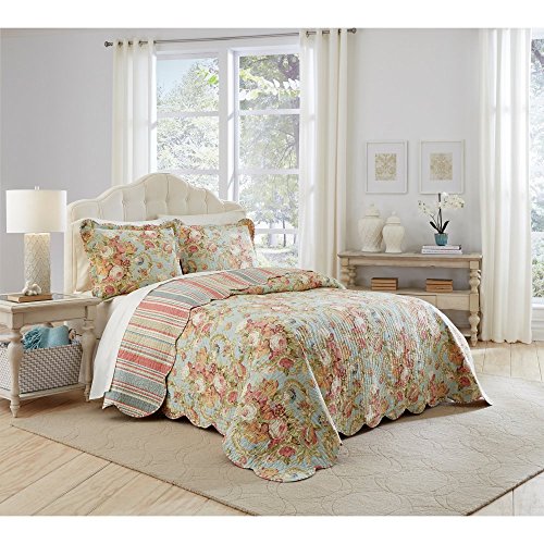 Studio : Ellery Holdings LLC Publisher : Ellery Holdings LLC Product Description Make an inspired change to your bedroom simply by switching out the linens! The Spring Bling 3 Piece Bedspread Collection by Waverly brings a new look and charming feel with a spring-like color palette of turquoise, pinks, oranges, and greens. Bouquets of roses adorn one side, while timeless stripes cover the other. Change the look and feel of your bed as often as you’d like! The three-piece set includes the bedspread and two matching pillow shams for a complete look. Made from 100% cotton, this set is machine washable. Size Options KingBedspread: 110L x 120W in. Sham (each): 36L x 20W in. QueenBedspread: 96L x 110W in. Sham (each): 26L x 20W in. Choice of available sizes. Includes bedspread and 2 shams. 100% cotton. Floral pattern. Reversible design for 2 looks. Machine washable. 0