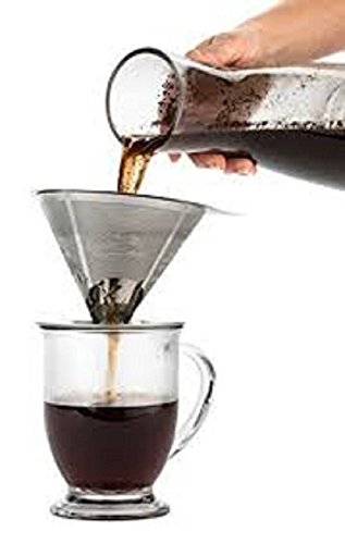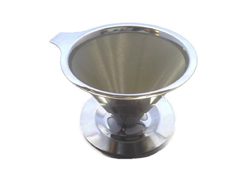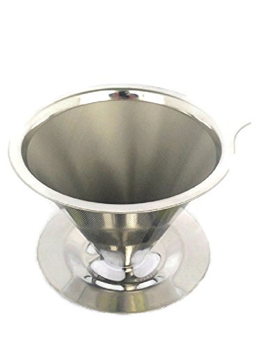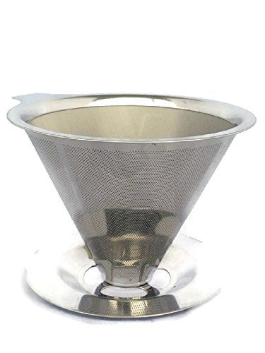 -. Feature : Proffesional Coffee Making - Currently the hottest trend in manual coffee brewing, this stainless steel pour over coffee dripper enables you to brew up delicious cups of coffee like a professional barista. The dripper is made to be durable and reusable due to its metal design, which does away with the need for a paper filter. An extended lip on the base of the dripper keeps the device secure on your mug or cup while you brew up your coffee! / SAVE MONEY AND DO AWAY WITH WASTE - This stainless steel pour over coffee maker serves as it's own coffee filter, doing away with the need for disposable paper filters that are costly, wasteful and prevent the flavor rich oils in your beans from passing through to your coffee mug or cup. / BREW COFFEE EFFORTLESSLY AT HOME OR ON THE GO - This coffee dripper only requires coffee grounds and hot water to use. No paper filters, electricity, complicated parts or contraptions needed. Use the stainless steel dripper to prepare just a single cup at a time or a small pot for 2-3 people to your exact taste and strength preferences.