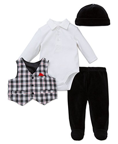 -. Title : Little Me Baby Boys'' Plaid 4 Piece Vest Set