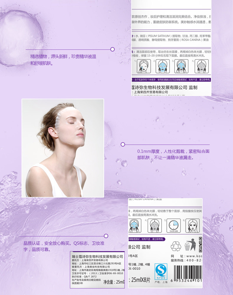 蔻诗弥 妆后美肌面膜8片装 深层清洁毛孔改善暗沉护肤品提亮肤色